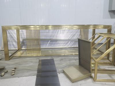 大型長方形鈦金不銹鋼桌子指的是用不銹鋼材料制作,體積較大的長方形桌子,這種桌子一般用于酒店或會所之中,因為結構簡單,所以往往會在臺面邊框及下部制作一些造型來增加美感。