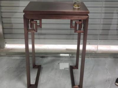 仿古不銹鋼展臺(tái)主要以古式造型來(lái)制作,常用于做茶臺(tái),擺放花盆或是擺放工藝品為主,一般尺寸不大,顏色以深色為主,是常見(jiàn)的不銹鋼家具。下面就介紹河南鑫馬不銹鋼制品有限公司制作的一款仿古不銹鋼展臺(tái)。