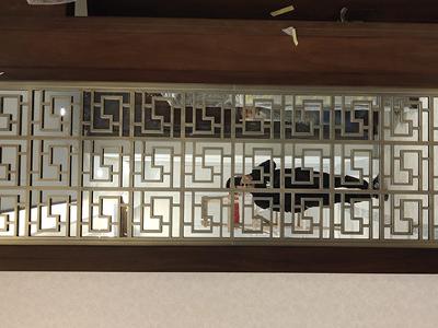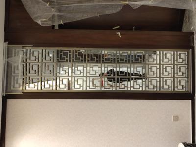 回形紋并不是指某種花型,而是指頭尾相連的直線組成的簡單的花型,太復雜的或是弧形的花型都不能稱為回形紋。上面的圖片就是一款回形紋青古銅不銹鋼屏風,大家可以理解一下什么是回形紋??赡芎芏嗳艘豢吹竭@種屏風會認為這不是古典中式不銹鋼屏風嗎?其實它與古典中式很像,屬于一種變異花型,但是卻屬于新中式不銹鋼屏風。由于回形紋需要頭尾相接,并且采用直線組成花型,所以一般采用激光切割或是管材焊接,那么造型就不能太復雜,否則就會非常難易制作。另外由于這種屏風是采用重復同樣的花型,展現(xiàn)對稱之美,所以花型也不能太復雜,因為太復雜,就會產(chǎn)生密集恐懼癥,那樣就得不償失了。所以回形紋不銹鋼屏風密度較大,造型比較簡單。